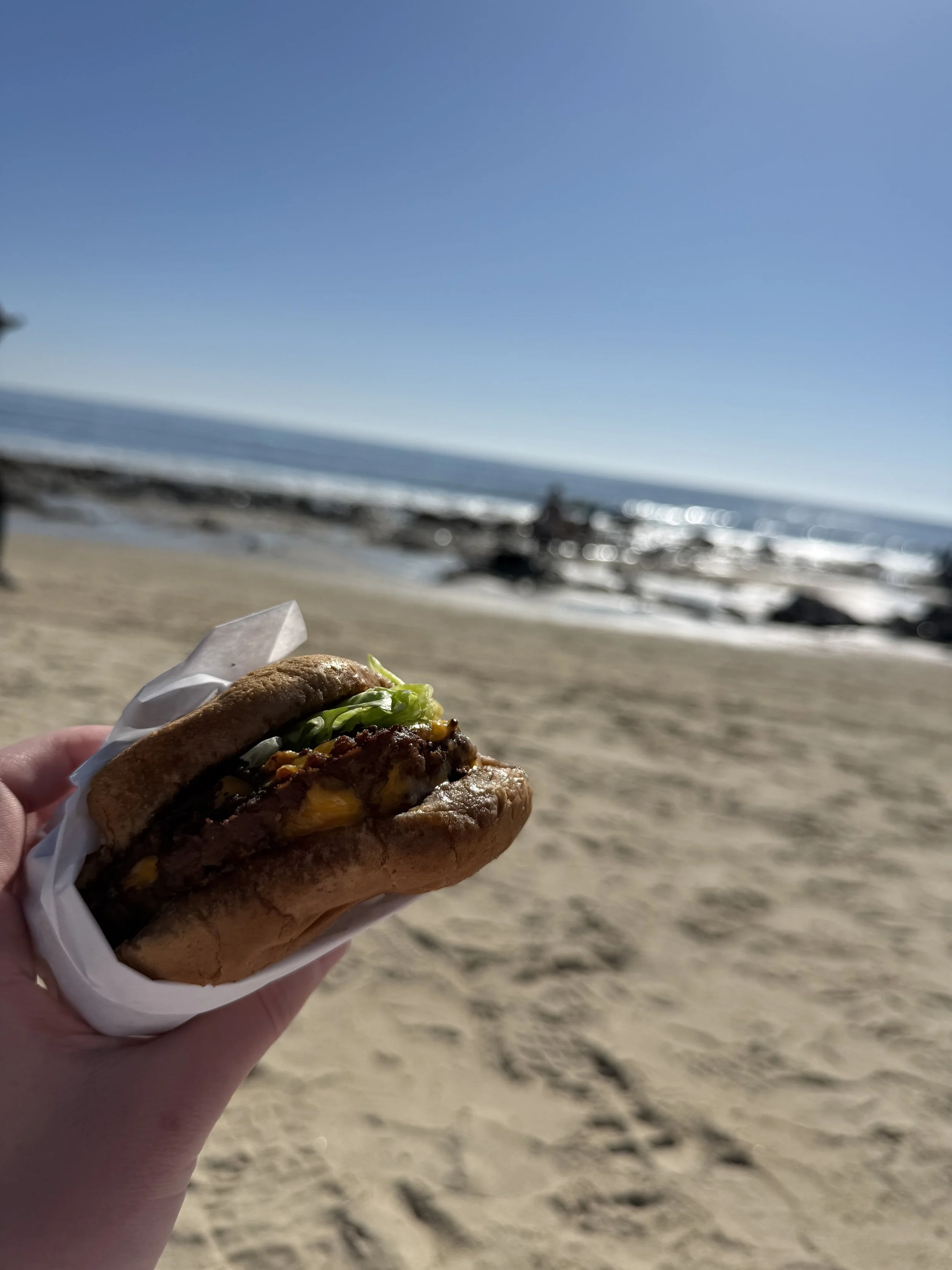 Making our way to the beach, we stopped by Lido House and got some cocktails on their rooftop, which I highly recommend! We had heard great things about Shake Shack in Crystal Cove State Park, so we had a bit of a hike, grabbed our burgers and shakes, then hiked back down to the beach to enjoy :) The water was clear and cool, the sky was clear and sunny, and it was a beautiful moment.