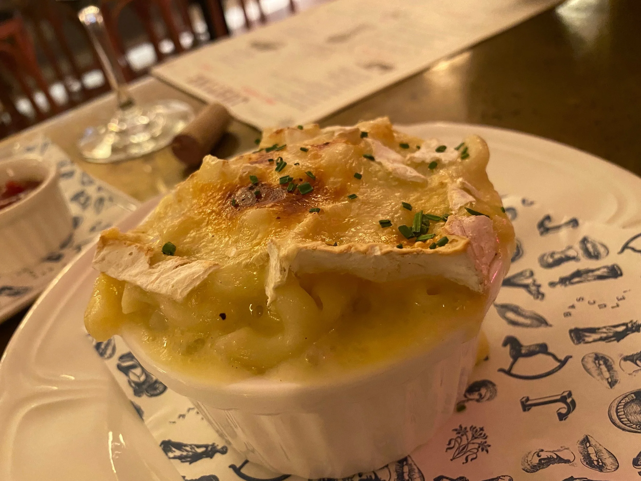 Beautiful, trendy French brasserie. I definitely recommend this place for a girl’s night or a sexy date night. I recommend the Onion Soup, the burger, and the Mac & Brie (pictured)