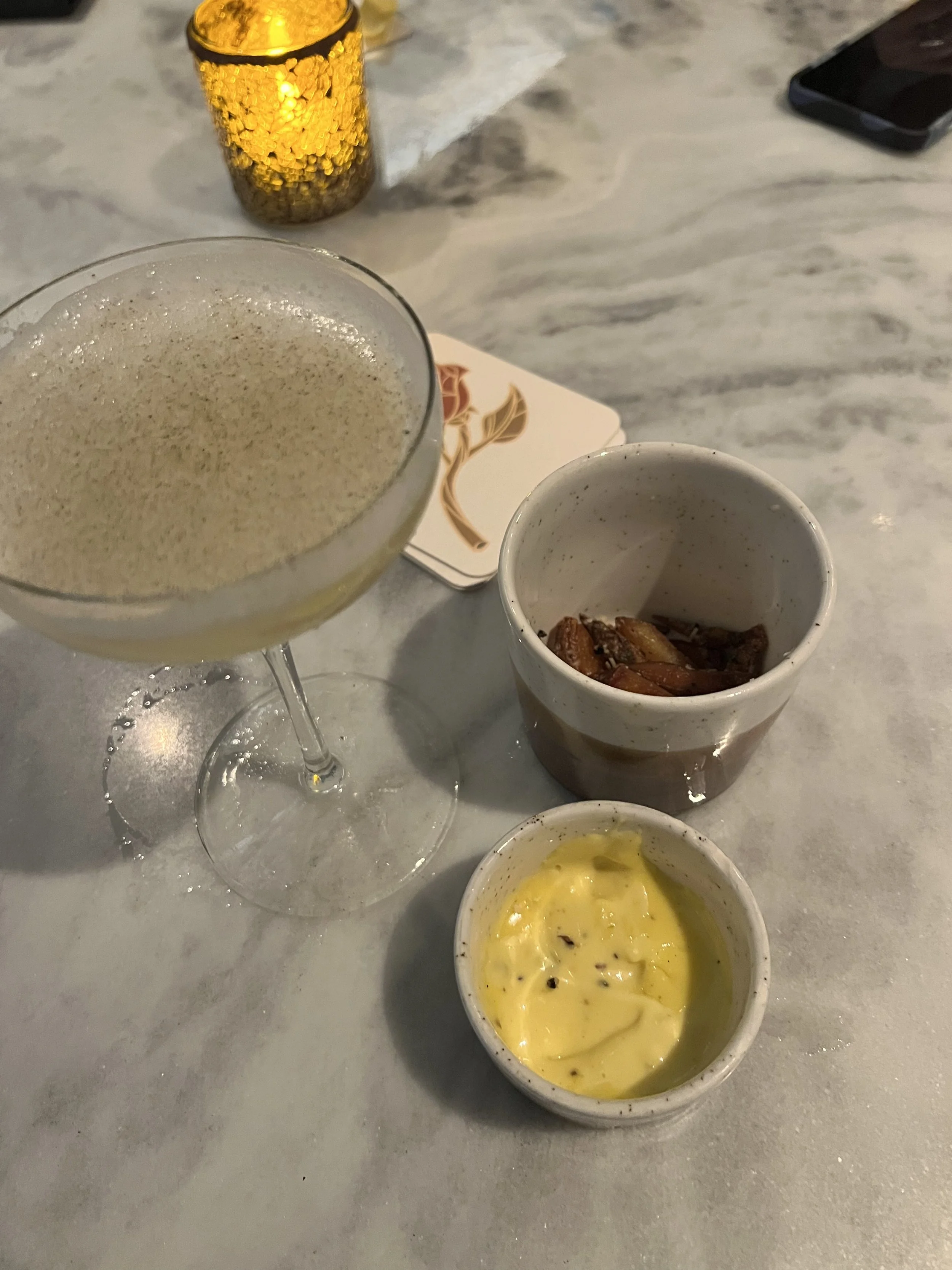 At Outer Rim, they don’t offer any food so you can only order drinks (mostly wine and classic cocktails). For non-alcoholic options, the Pink London Spritzer is my pick - a non-alcoholic spirit with grapefruit, mint, lime, and pomegranate green tea.